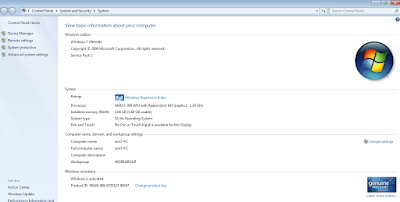 Spesifikasi laptop kita dapat kita lihat di Control Panel\System and Security\System. Disana